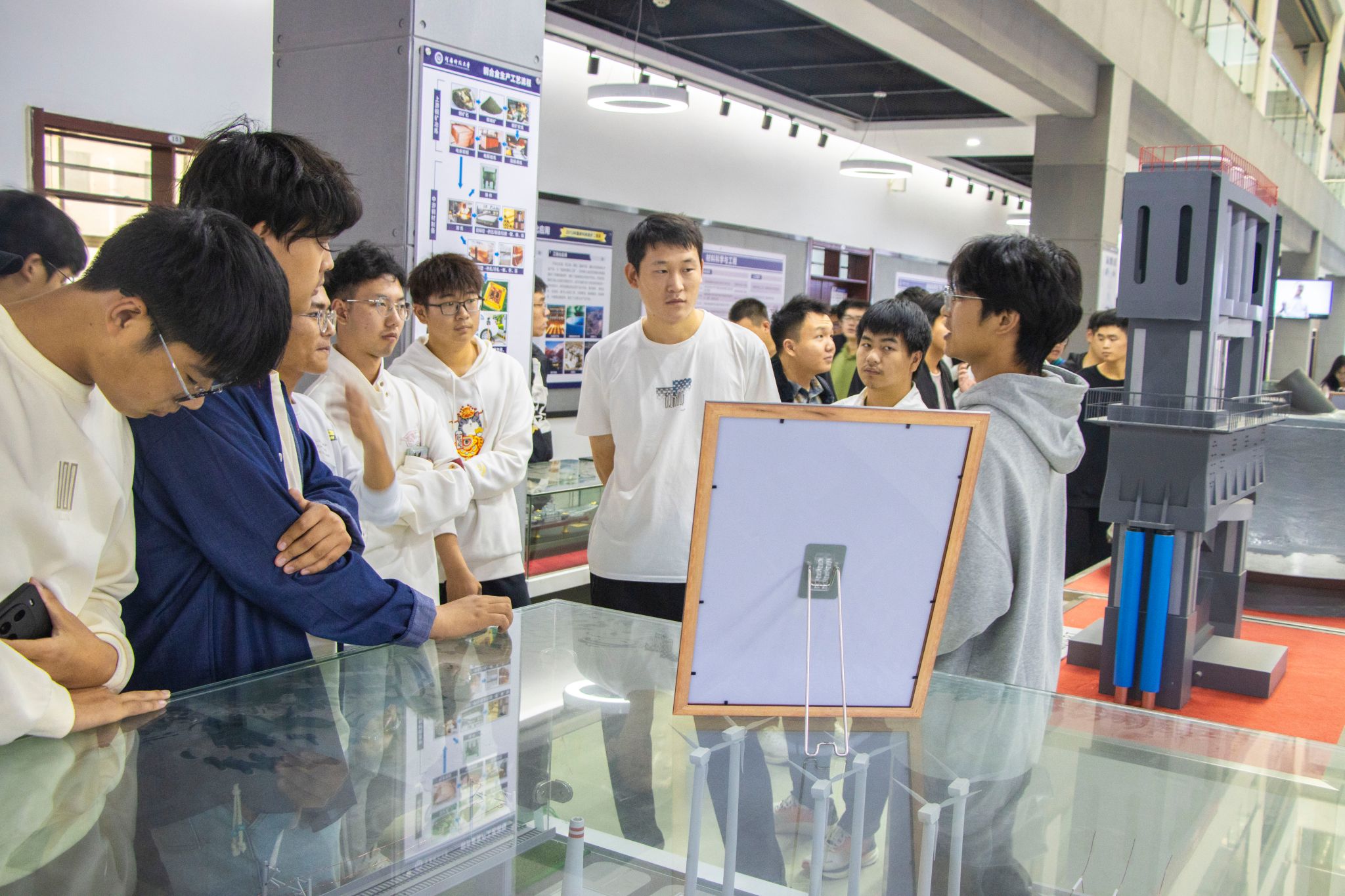 参观过程中,讲解员向同学们介绍了学院丰厚的历史底蕴、人才队伍的卓越实力、杰出校友的光辉成就,以及科学研究、学科团队、人才培养和创新创业方面的成果,并重点介绍了学院近年来围绕社会需求在产学研合作和科技成果转化方面取得的一系列重要成果。同学们在参观过程中表现出极大的学习热情和求知欲。他们聆听讲解员的悉心讲解,仔细阅读展板上的内容。