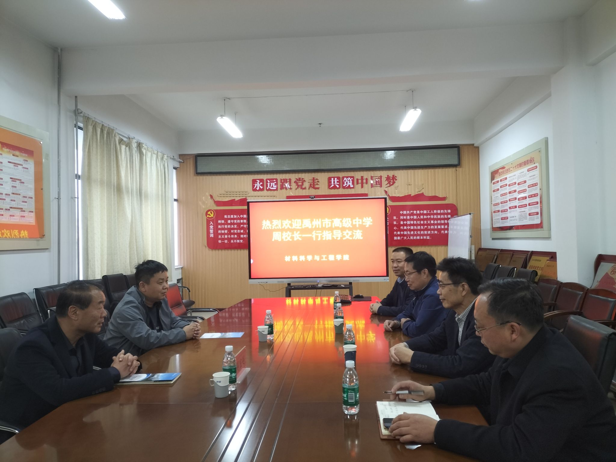李怀民对周校长和贺老师的到来表示欢迎,对禹州市第三高级中学为我校输送品学兼优的学子表示感谢,期待今后能进一步深化合作、携手并进。张柯柯简要介绍了学院的教学科研成果和学生培养情况,欢迎更多学生报考我校。双方围绕人才培养与衔接、学生创新创业能力提升等方面进行了交流。